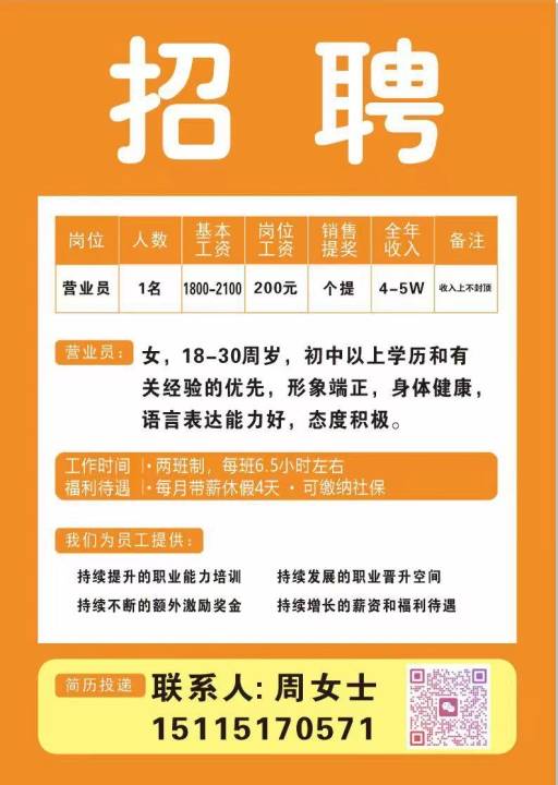 招聘岗位:荣耀手机销售1名工作地址:靖州县城福利待遇:五险、节日福利、...